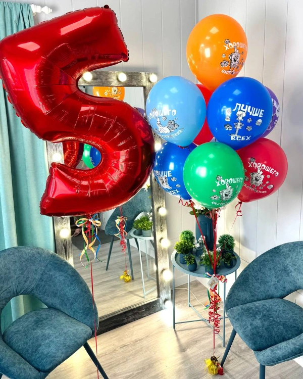 Набор воздушных шаров на 3 года. В набор входит цифирный серебряный шар одиночка в форме цифры 3 из фольги. Два одинаковых букета из шаров. Один букет включает в себя: четыре латексных светло-фиолетовых шара, один прозрачный латексный шар с серебряным конфетти внутри, один фольгированный шар серебряный в форме сердца, два темно-фиолетовых шара из латекса и один шар в форме звезды фиолетового цвета из фольги.
