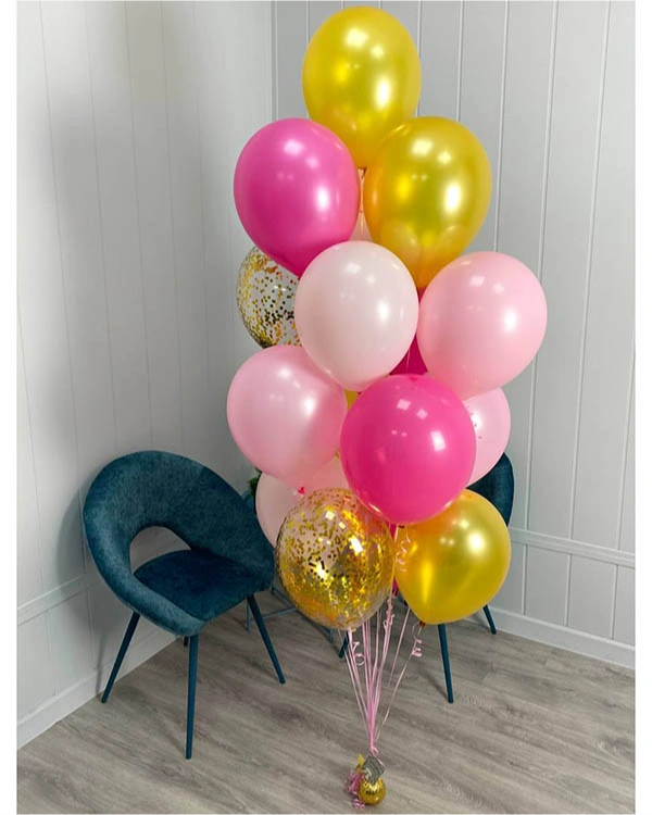 Набор из шаров для девочки, девушки или мамы. В наборе один большой фольгированный цифирный шар цвета фуше. Цифра указывается заказчиком. Букет из шаров: трех фиолетового цвета из латекса, двух агат шаров латексных голубого-розового-фиолетового цвета, одного фольгированного шара в форме сердца кораллового цвета. Отдельно шаров одиночка большой прозрачный внутри с серебряным конфетти и надписью. Её выбирает заказчик.