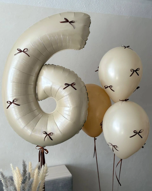 • Желтые латексные шары в сочетании с оттенками коричневого цвета (шоколадный, каштановый, кофейный и красно-коричневый) придают окружающему миру романтики и стабильности.