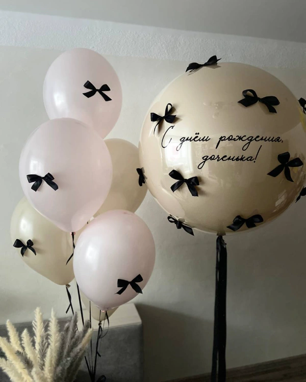 Набо для девушки из латексных шаров светящихся. В наборе 6 шаров. Все шары светятся. Сделаны они из латекса.Три шара белого цвета и три шара красного. На шарах надписи: «любимой», «ты самая самая», «мой мир-это ты».